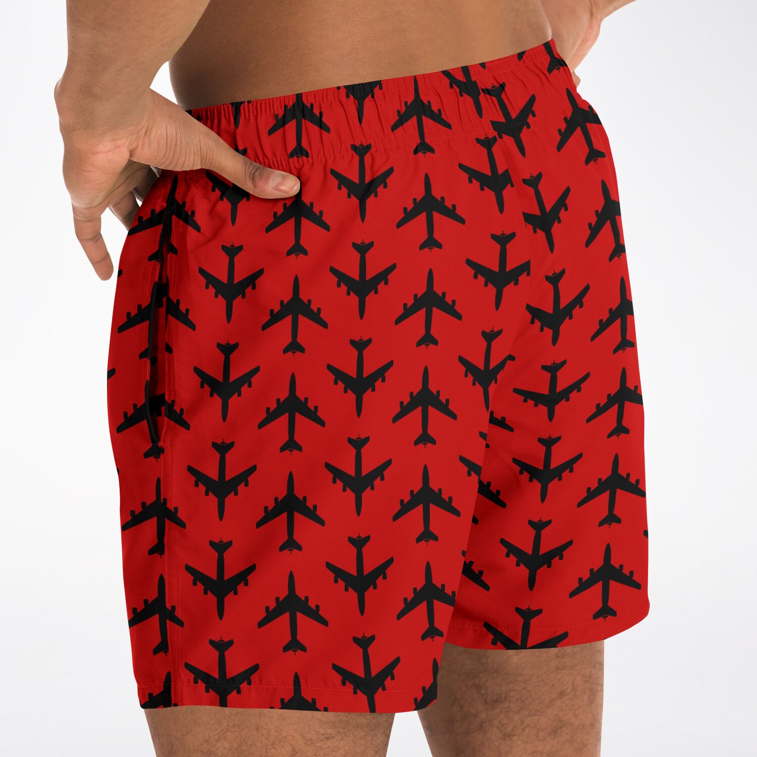 Look and stay cool with these shorter-length swim trunks that hit above the knee. They come in a fast-dry fabric, and feature a drawstring waistband, mesh basket lining and mesh-lined side pockets.